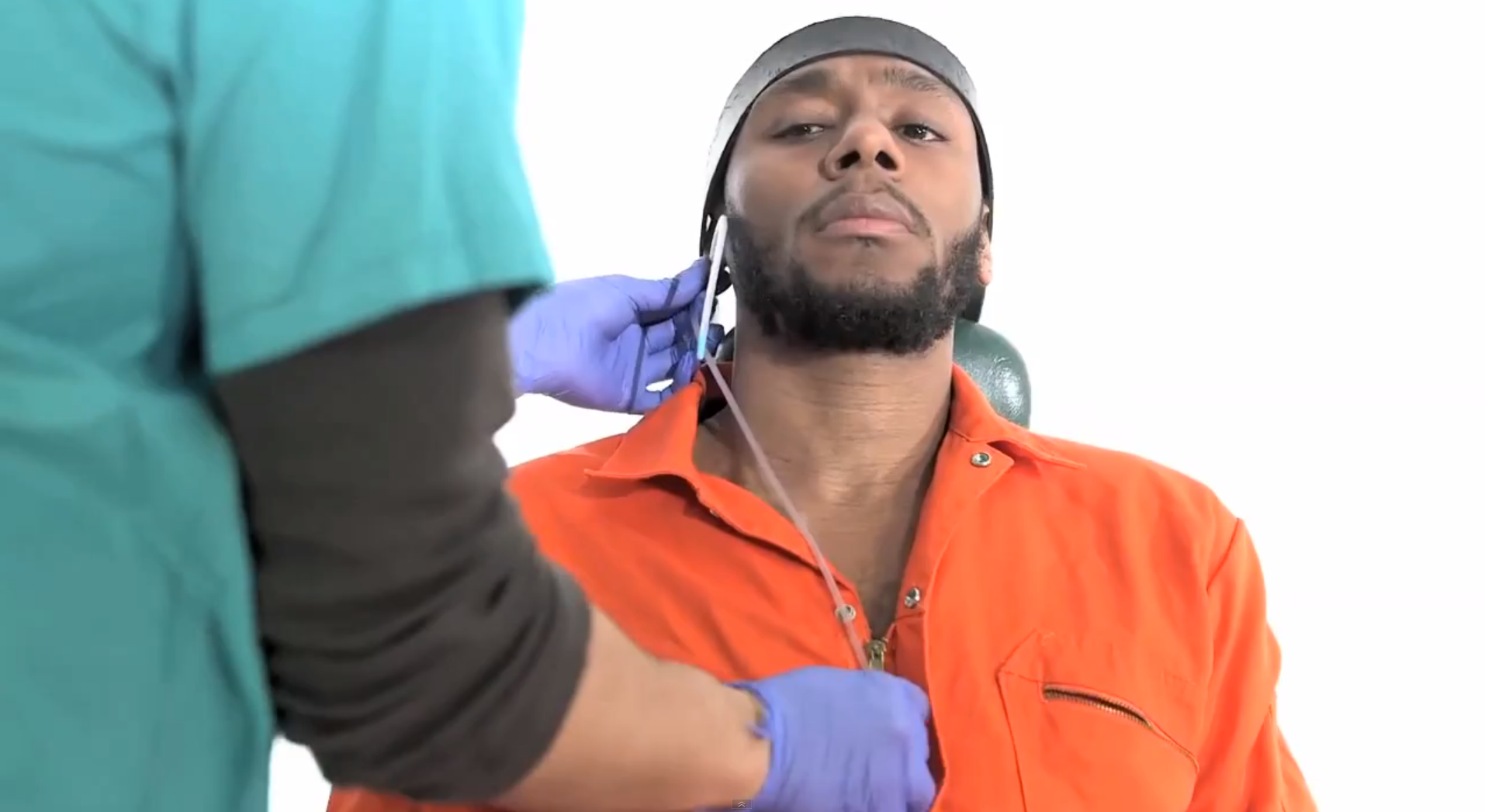 C’est la vidéo du jour. Pour protester contre les conditions d’incarcérations de la prison de Guantanamo, le rappeur Mos Def a subi devant les caméras, le traitement reservé aux prisonniers qui pratiquent la grève de la faim.