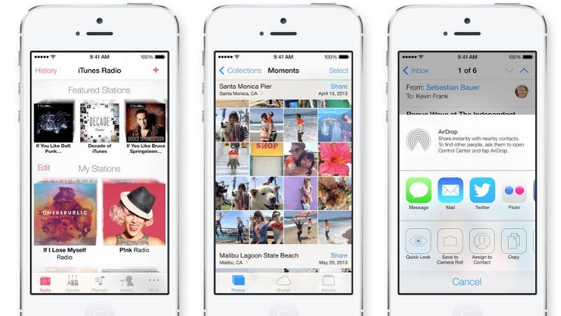 Si le principe d’utilisation de l’iPhone reste intact, prédominent clairement le blanc et les couleurs pastel, sans oublier des icônes et des fonds plus plats (un air de Windows Phone, peut-être ?). Après avoir subi un bon lifting, l’iOS sera disponible gratuitement cet automne pour les iPhone 4 et ultérieurs, l’iPad 2 et ultérieurs, pour l’iPad mini et l’iPod touch de cinquième génération, sous le nom d’ iOS7. Aussi, cette nouvelle version permettra de déverrouiller le téléphone différemment, et apportera un accès direct à des paramètres, par exemple pour activer rapidement le Wi-Fi. Sans oublier une application photos qui se dote de filtres (Instagram, le retour).